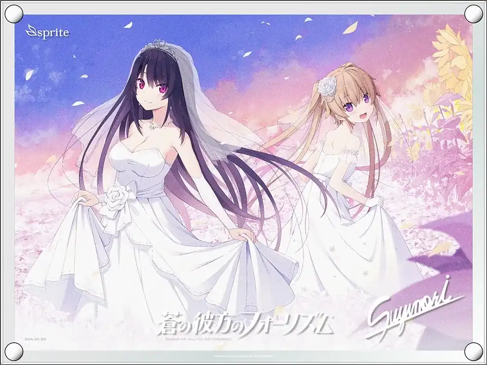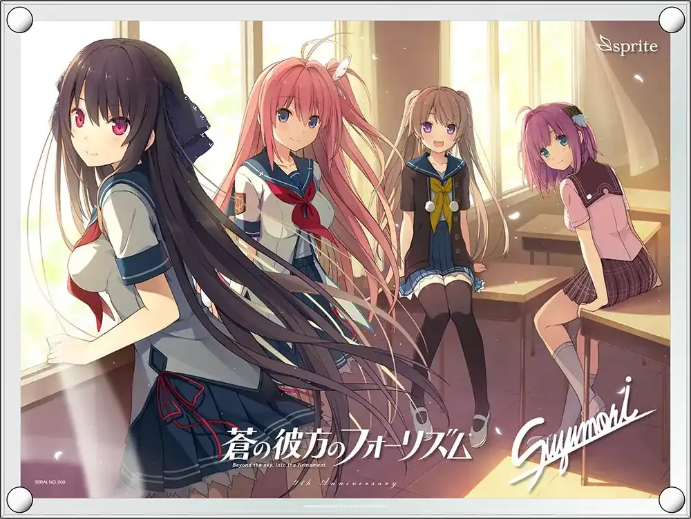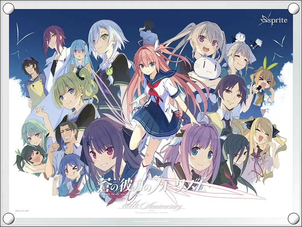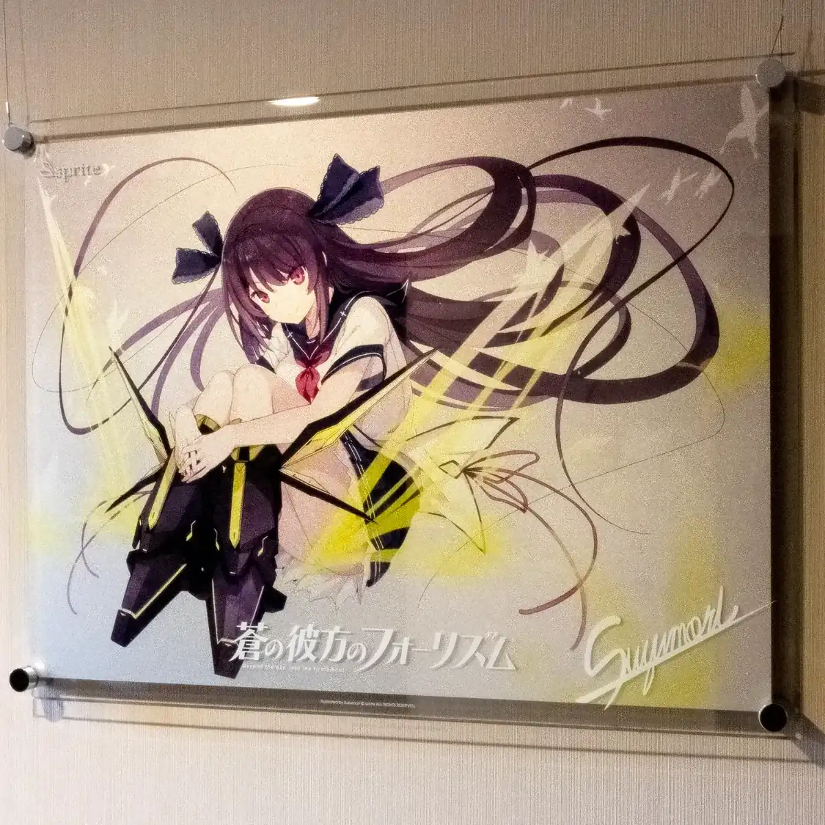 光に反射してキラキラと輝くフルカラー+シルバーの特殊印刷を施した透明度の高い大型のアクリルには、側面をダイヤモンドカットした上で磨き加工をかけています。 表面と裏面にはホワイトのシルクスクリーン印刷。さらに表面にはロゴと複製サインが入っています。